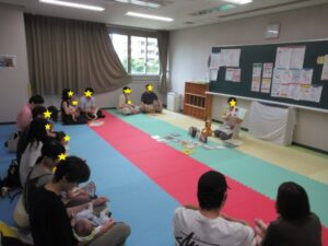 そして、最後は親子のふれあい遊びや手遊びと絵本の読み聞かせを楽しんでいただきました。赤ちゃんたちはニコニコご機嫌でした。