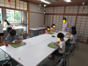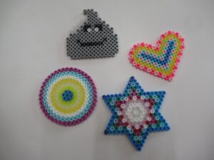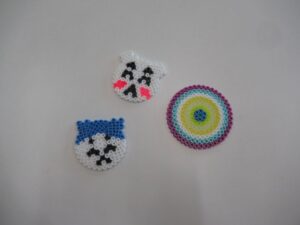 今回は10cmの四角・ハート・丸型で作りました。色選びから集中し、ほとんど話すことなく集中して取り組めていました。思い思いの作品ができあがりました。