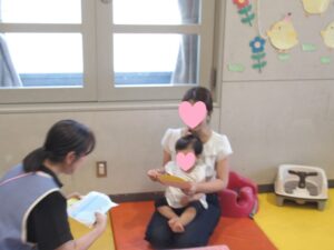 9月生まれの誕生会です。つどいのひろばのみなさんとお祝いできました。手形も上手にとれて、とっても素敵なカードができました。みんな元気にもっともっと大きくなーれ!