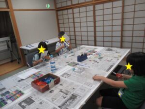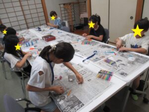 今回も、ビー玉コロコロ落としを作りました。お友だちと話しながら製作してくれていました。ハサミで切る作業はスムーズにできていましたが、何の絵にしようか考える児童が多かったです。ビー玉も下からの方が難しいと発見があり楽しんでいました。