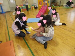 12月生まれのお子さんはたくさんいて、遊びに来てくれた親子もたくさんいたので、たくさんのみなさんでお祝いできました。生まれて初めての誕生会、初めての手形と初めて尽くしに立ち会えました。うれしい思いです。みんなみんな元気に大きくな~れ!