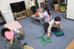 今日は、西都島福祉会館に児童の手作りカレンダーを配りに行き、その後は図書室のおもちゃの点検を整理をしてもらいました。ドミノやカプラを整理してくれたり、おもちゃの不足部品の確認などをしてくれました。年末のこの時期、おうちでも掃除や整理のお手伝いをしているのかな。