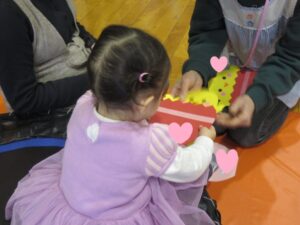 1月生まれの誕生会に、寒いなかたくさん集まってくれました。一人ずつ名前を呼ぶと、保護者の方と一緒に「ハーイ」とかわいい声でお返事をしてくれたり、手をあげてくれたりしました。お祝いしてくれたお友だちありがとう。誕生会を迎えたお友だちも、元気でもっともっと大きくなってくださいね。
