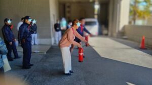 今日は都島センタービルの避難訓練でした。都島消防署の消防士さんから消火器の取り扱い方などを教えてもらい、訓練は終了しました。