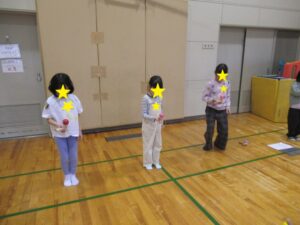 今回は初めての児童が2名いました。集中して黙々と練習する児童とお話ばかりの児童とでした。試験には3名が合格し、その後はけん玉遊びをしました。順番に大皿にのせていく遊びでは、なかなか成功せず、何度も取り組みました。