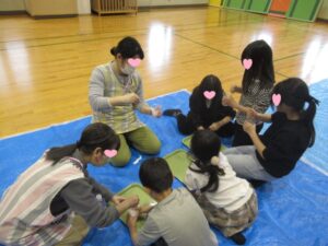 雨の中楽しみに来館してくれました。自分で量りを使って洗濯のりと水を混ぜあわせ、ホウ砂を少しずち足してスライムをつくりました。好みのやわらかさになるまで微調整をくり返して感触を楽しんでいました。