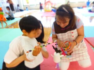 親子製作「ハロウィン」は ‘‘ゆらゆらおばけ‘‘ を親子で作りました!