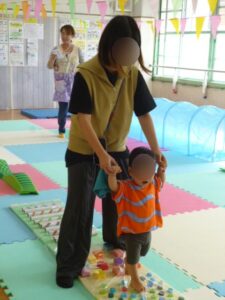 ぶら下がってみたり、くぐり抜けてみたり、あ母さんのサポートでよじ登ってみたり…