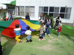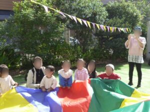 最後はパラバルーン!ハロウィンの軽快な音楽に合わせて遊びました。