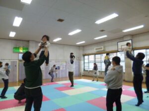 絵本「ゴリラのおとうちゃん」を見て、絵本に出てきたからだあそびを実際にやってみました。