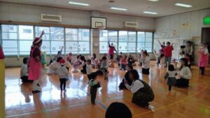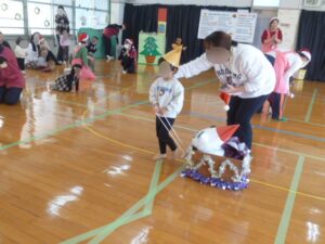 ♪赤鼻のトナカイ♪ の曲とともに、いろいろな楽器を持った職員が入場!!楽しい音楽にみんな大喜び♪