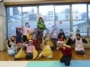 振り返るとプレゼントの袋が置いてあり、みんな大喜びでした。