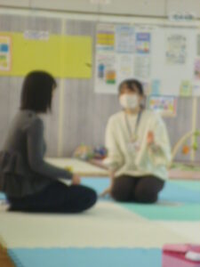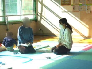 講話後の個人相談では、栄養士さんからそれぞれの方にお話しをしてくださり、日頃のちょっとした悩みごとなどを聞いてもらっていたようです。区役所に行けばいつもいてくださる栄養士さんには、生まれてからずっと相談にのってもらい、見守ってもらっていると言う保護者の言葉には、心強さを感じました。