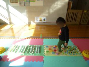 手形、足形にあわせて歩きます。