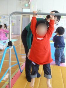 鉄棒をしっかり、握って…