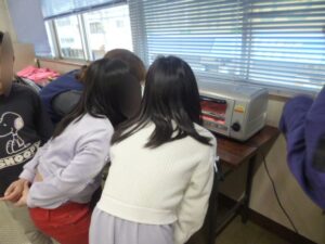 そしてトースターに入れたプラバンがどうなるのか、見守ります。
