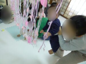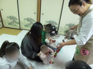 ふれあい遊びの後にはいちごに見立てた布のおもちゃを使っていちご狩りごっこ★