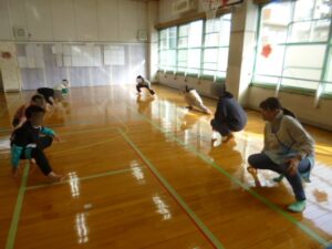 学校でやってるよ!と、子どもたちがリーダーになって試合前の準備体操~♪そしてルールの再確認。