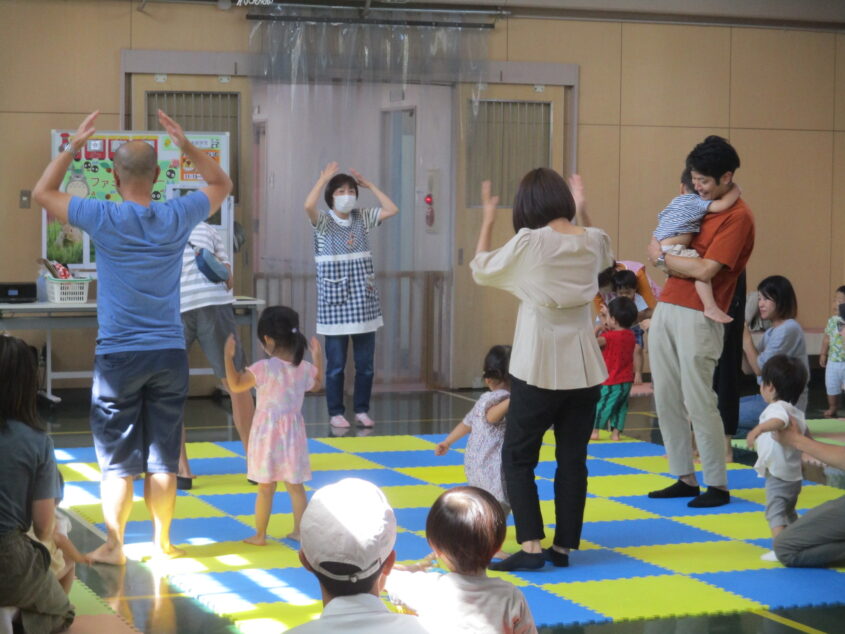今月のおたのしみたいむは、みんなで「どうぶつたいそう1・2・3」の体操をしました♪ いろいろな動物の写真のカードを見ながら、動物の動きをまねっこし、最後に音楽に合わせて、保護者の方とお子さん達でたくさん身体を動かしていただきました。笑顔あふれる、とってもにぎやかで楽しい時間となりました!! 次回のおたのしみたいむは、11/25(土)です。皆さんのご参加お待ちしております☆