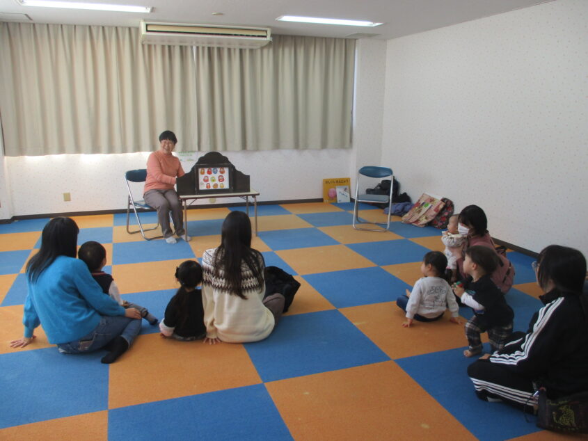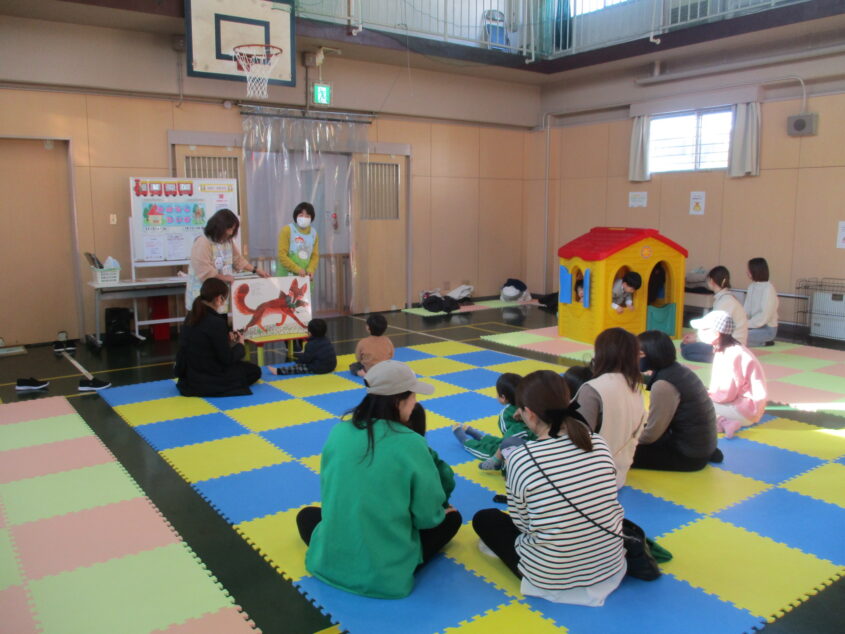 午前は、ぽかぽかルームで「住吉絵本の会」のボランティアさん、午後は、わんぱくルームでプラザスタッフで、大型絵本や紙芝居、マジックシアターなどを皆さんにみていただきました!寒いこの時期、ほっこり温まるような内容の絵本をみていただきました。親子で触れ合いながら絵本をみたり、マジックシアターでは「何が出てくるかな?」とみんなで答えたり、それぞれの年齢に合わせた楽しみ方をしていました。