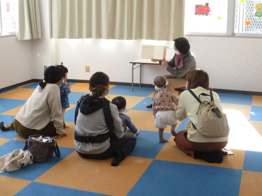 午前は、ぽかぽかルームで「住吉絵本の会」のボランティアさん、午後は、わんぱくルームでプラザスタッフが、大型絵本や紙芝居、ペープサートやスケッチブックシアターなどをし、皆さんにみていただきました!絵本に興味のあるお子さんは、絵本をじーっと見つめながらお話を聞いていました☆ 14日(水)の午後は園児さんも参加され、スタッフの問いかけに、手を挙げてどんどん答え、にぎやかな雰囲気の『おはなしたいむ』でした♪