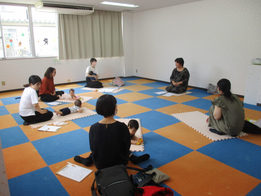 5組10名が参加してくださいました。保育園の園長先生にお話していただき、0歳児の成長の様子や、保育園の0歳児さんの姿、保育士の対応についてお話をしていただきました。また、ふれあい遊びなども教えてくださいました。最後は個別相談でお母さんの子育ての悩みをじっくりと聞いていただきました。
