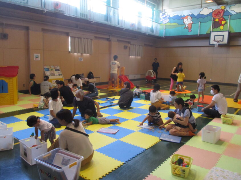 夏休みに入り、たくさんの方が遊びに来られました!祖父母さまやお父さんお母さん、ご家族皆さんで来られる方が多かったです。24日には、いつもは出していないトランポリンを出して遊んでもらいました。はじめは、見慣れない遊具に戸惑っていたお子さんも、お友だちが跳んでいる姿を見て、保護者の方と手をつないで、ピョンピョン♪と楽しそうに跳んでいました♡