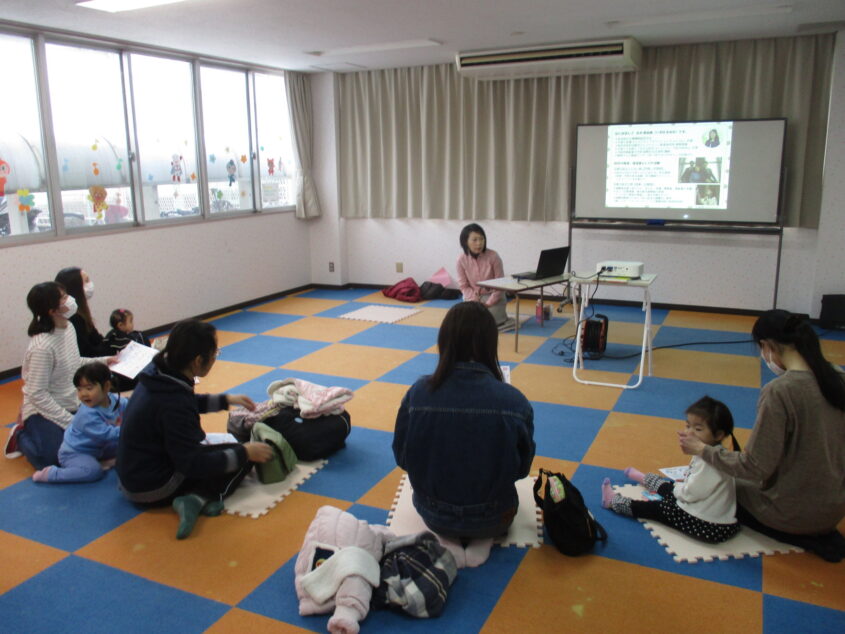 子育て中のお母さんに向けての防災教室を開催しました。いざ、災害が起こった時の、対応の仕方を具体的に実践しながら、学びました。