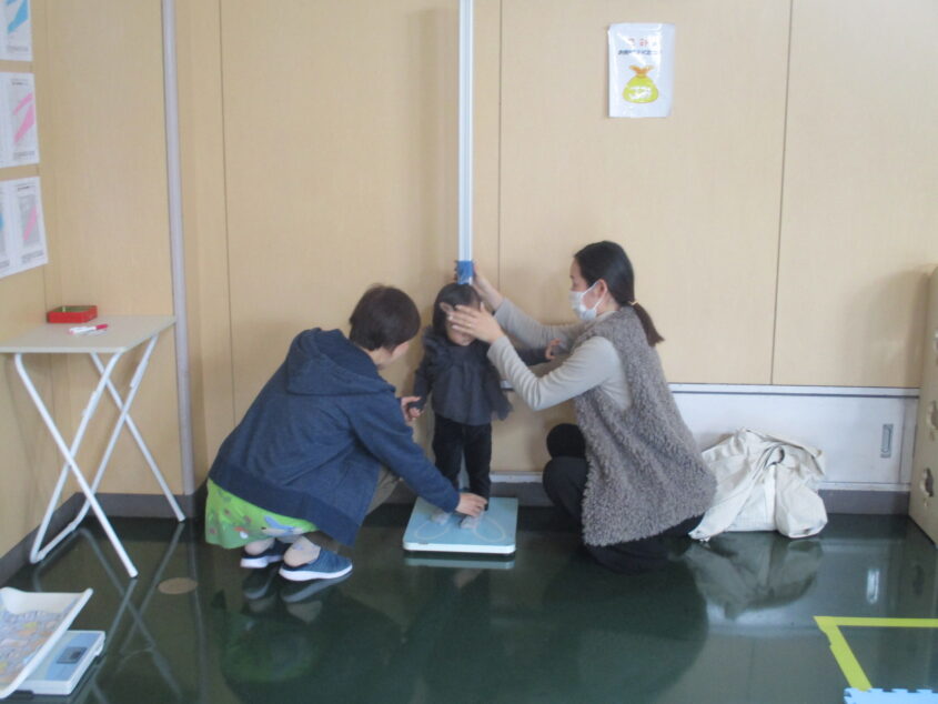 今月から、計測できる時間が9:30~14:30となり、希望される親子さんは、計測したい時に測りに来てもらい、スタッフは計測のお手伝いをさせていただきました。保護者の方は、初めて身長計を使ってお子さんの身長を測り、「初めて私が我が子の身長を測りました。とても新鮮な気分でした♪」とお話されていました。
