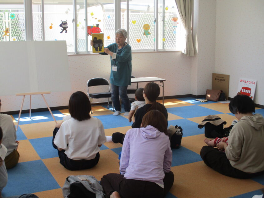 「住吉絵本の会」のボランティアさんによる、絵本や大型絵本、紙芝居やパネルシアターなどをみていただきました! 擬音の多い絵本や、かわいいいパネルシアターに興味深々のお子さんたち。喜んでみてくれていました♪