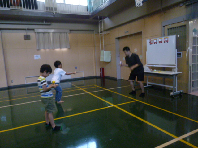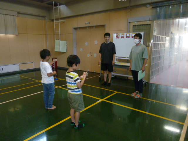 本日は、前回10級をもらった児童1名と、初めて参加の児童1名の、計2名参加がありました。けん玉の大皿、中皿、小皿にのせる練習をしてから、けん玉を使った遊びを沢山教えて頂きました。