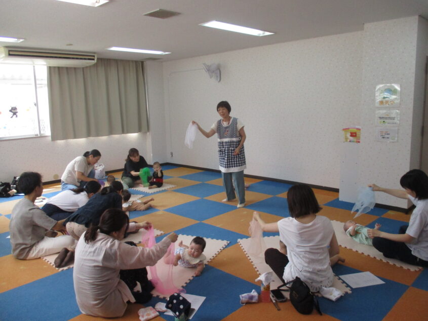 7組の親子さんたちが参加してくださいました✨ふれあい遊びでは、子どもさんを膝に座らせたり、抱っこしたりしてたくさんスキンシップをされていました♡オーガンジー遊びをして遊んだり、おしゃべりたいむも役立つ情報や、不安を失くしてくれる言葉を、保護者さん達も教えてくださり、ためになる充実した時間でした☆