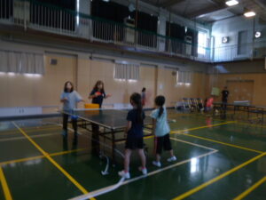 高学年の子どもたちは、『サーブができないことには試合が始まらない!』と今回はサーブの練習も行いました。カットサーブも教えてもらいました。低学年の子どもたちは、繰り返しフォアで球をを打ち返す練習を行い、少しずつ上手に打ち返せるようになっていました👏 みんな笑顔を見せながら楽しそうに練習をしていました♪