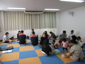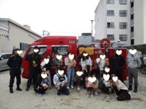 10組のお子さんと保護者が、参加されました。乳幼児の救命処置の映像を見てから、人形での実演をして皆さん熱心に消防署の方のお話を聞いて、勉強されました。消防車と写真撮影もさせていただきました。消防署の方々、ありがとうございました!!