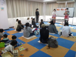 お申し込みされた10組、皆さん参加して下さいました。いつものつどいの広場とは違うお部屋に、少し戸惑うお子さんが多く、始めは不安げな表情をみせていましたが、講座が始まるとおもちゃで遊んだり、保護者さんのお膝で機嫌よく過ごしたりしていました!発達段階に応じた磨き方や歯ブラシ選びを教えていただき、いろいろなご質問に歯科医師の先生や歯科衛生士さんが、丁寧に答えて下いました✨皆さん熱心にお話を聞かれていました。