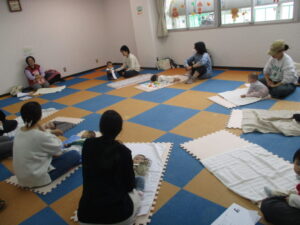 今回のベビーマッサージは、9組、幅広い月齢のお子さんと保護者の方が参加して下さいました✨ 講師の先生の柔らかなお声で、ほんわかした温かい雰囲気の中、ベビーマッサージのお話を聞いたり、実践してたり…癒しの空間でした♡お家でもお子さんと保護者の方とのスキンシップの時間に、ベビーマッサージを取り入れてみて下さい♪