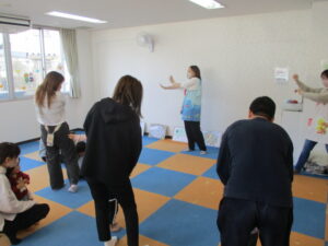 今回のおたのしみたいむは、『昆虫太極拳』をしました!カマキリ・ダンゴムシ・バッタ・カメムシのポーズをしながら身体を動かして楽しみました✨保護者の方々も一緒に取り組んで下さり、どんどん速くなる動きに、皆さん頑張ってついてこれていました👏虫たちの詳しいお話も聞き、お勉強にもなりました!!