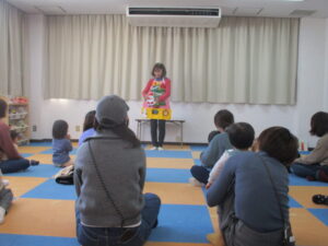 「住吉絵本の会」のボランティアさんによる、絵本や大型絵本やエプロンシアターなどをみていただきました!保護者の方のお膝の上で、ニコニコしながらお話を聞いている乳児さんや、ボランティアさんの問いかけに、率先して答えてくれる幼児さん♡どのお子さんも、楽しまれていました!クリスマスが近づき、クリスマスに関するお話をたくさんして下さっていました🎄