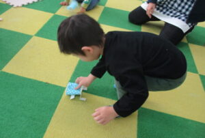 今回は、カラフルな「ぴょんぴょんがえる」を親子さんで作りました🐸 紙コップに手足を折り曲げて貼ったり、目を貼ったり、ちょっとしたコツをスタッフに教えてもらいながら、上手に作っていました! 完成したカエルさんを上手に跳ばすお子さんたち✨ とっても嬉しそうにしていました♡