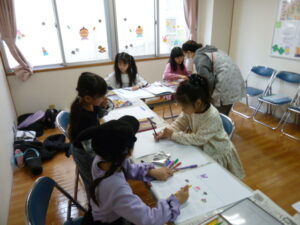 まずは、プラザに飾る用のカレンダーをみんなで手分けして作りました。1枚目は、自分のお誕生月を作りました。9月生まれの児童は2名いたので、じゃんけんで決めました。2枚目は、くじ引きで引いた月を作りました。のりや両面テープで丁寧に折り紙を貼って、好きな絵を描いたり、、、各々楽しみながら製作していました♡お持ち帰り用のカレンダーにも、キャラクターや家族の絵を描いたりと、思い思いの作品が出来上がりました♡