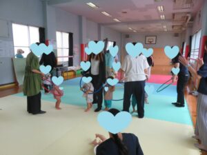 「とんぼのめがね」のお歌でとんぼのまねっこをして、ゆらゆらおっとっととバランスを取ったり、音の高低を聴き分けたり、縦ゆれ横揺れのリズムを感じるなど楽しい刺激がいっぱいのリトミックです。