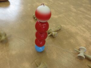 今日は久々のけん玉教室で、多くが低学年の参加者でした。けん玉のレベルも近く、みんなで教え合いながら楽しくけん玉を楽しみました。