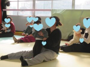 あかちゃんとたくさんスキンシップを取りながらリズムを楽しんでもらいました。