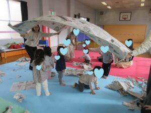 そして、今月のあそび【新聞紙あそび】を楽しみました。
