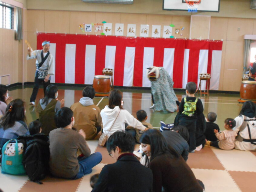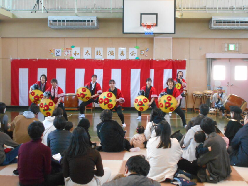 今年も郷土サークル「野火」のみなさんの迫力ある和太鼓演奏、獅子舞踊り、