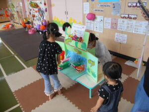 ヨーヨーつり、手作りガチャガチャ、ワニワニパニックなどの各コーナーを自由に回ったり、