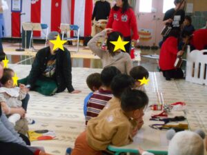 山裕会さんによる和太鼓の演奏や楽器体験ではみんな興味津々…☻